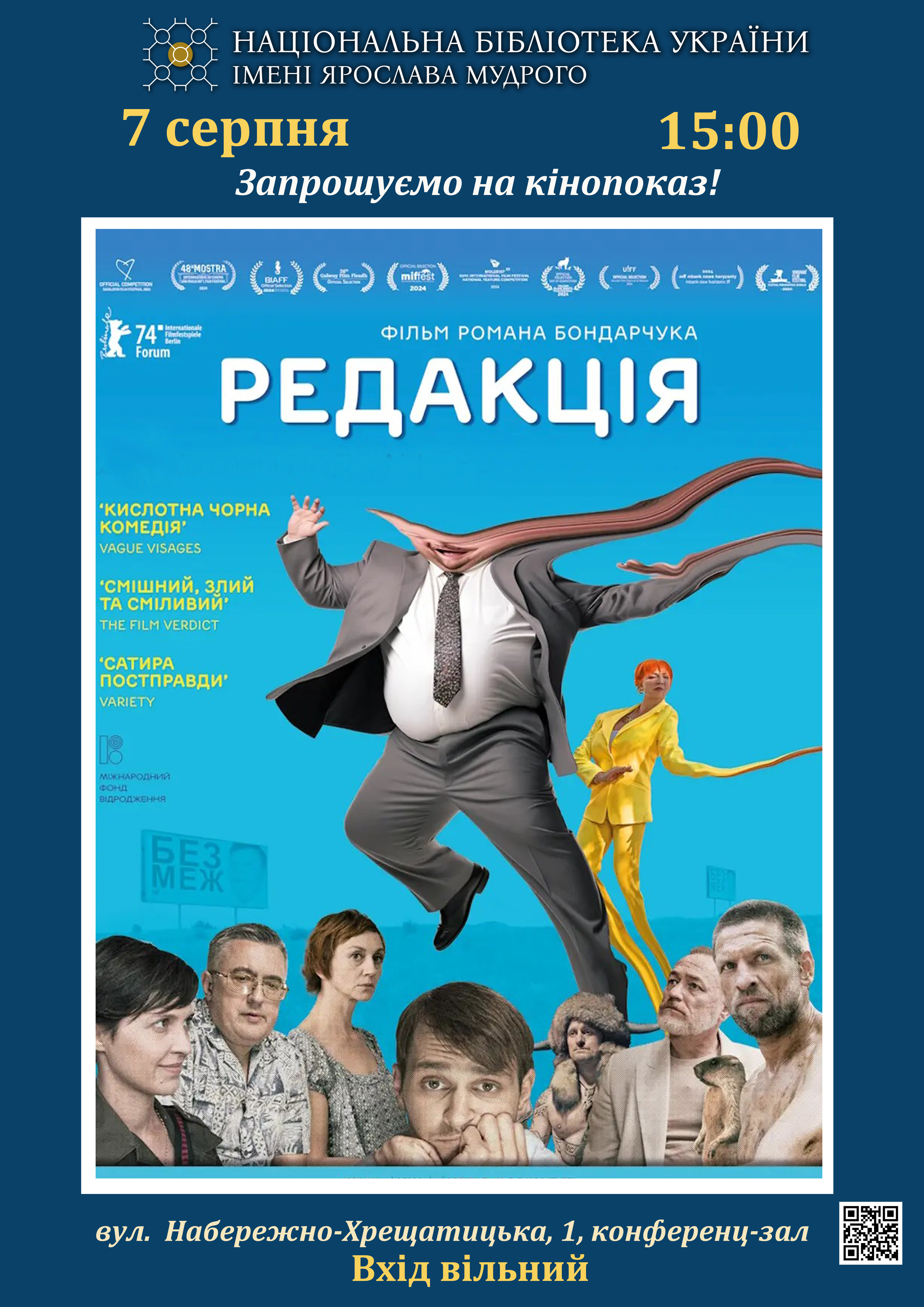 (бібліотека не обслуговує користувачів).  | Показ фільму «Редакція» (Україна, Німеччина, Словаччина, Чехія, 2024)