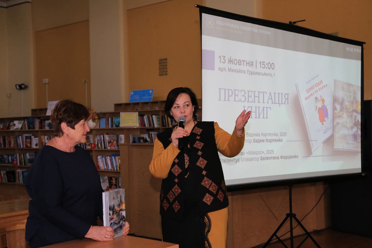 13 жовтня в Національній бібліотеці України імені Ярослава Мудрого відбулася надзвичайно важлива презентація книг двох видавництв: «Макрос» – директор Валентина Григорівна Федоренко і «Видавництво Вадима Карпенка» – він же директор і автор ряду популярних книг – Вадим Миколайович Карпенко.