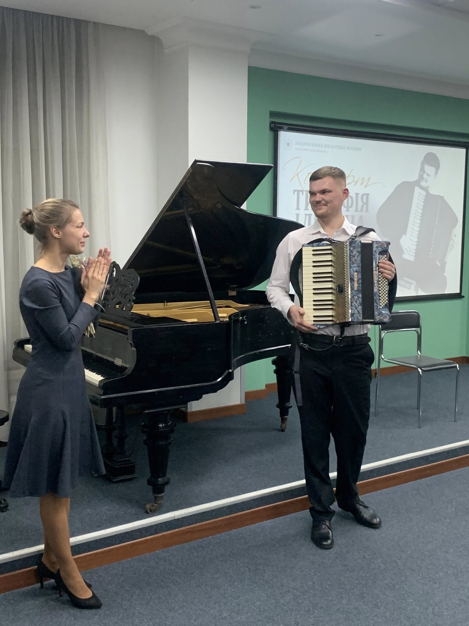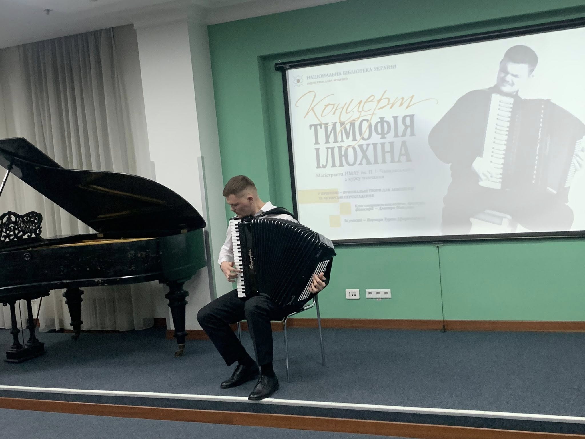 1 грудня в Національній бібліотеці України імені Ярослава Мудрого відбувся концерт Тимофія Ілюхіна (акордеон) за участі Варвари Турти (фортепіано).