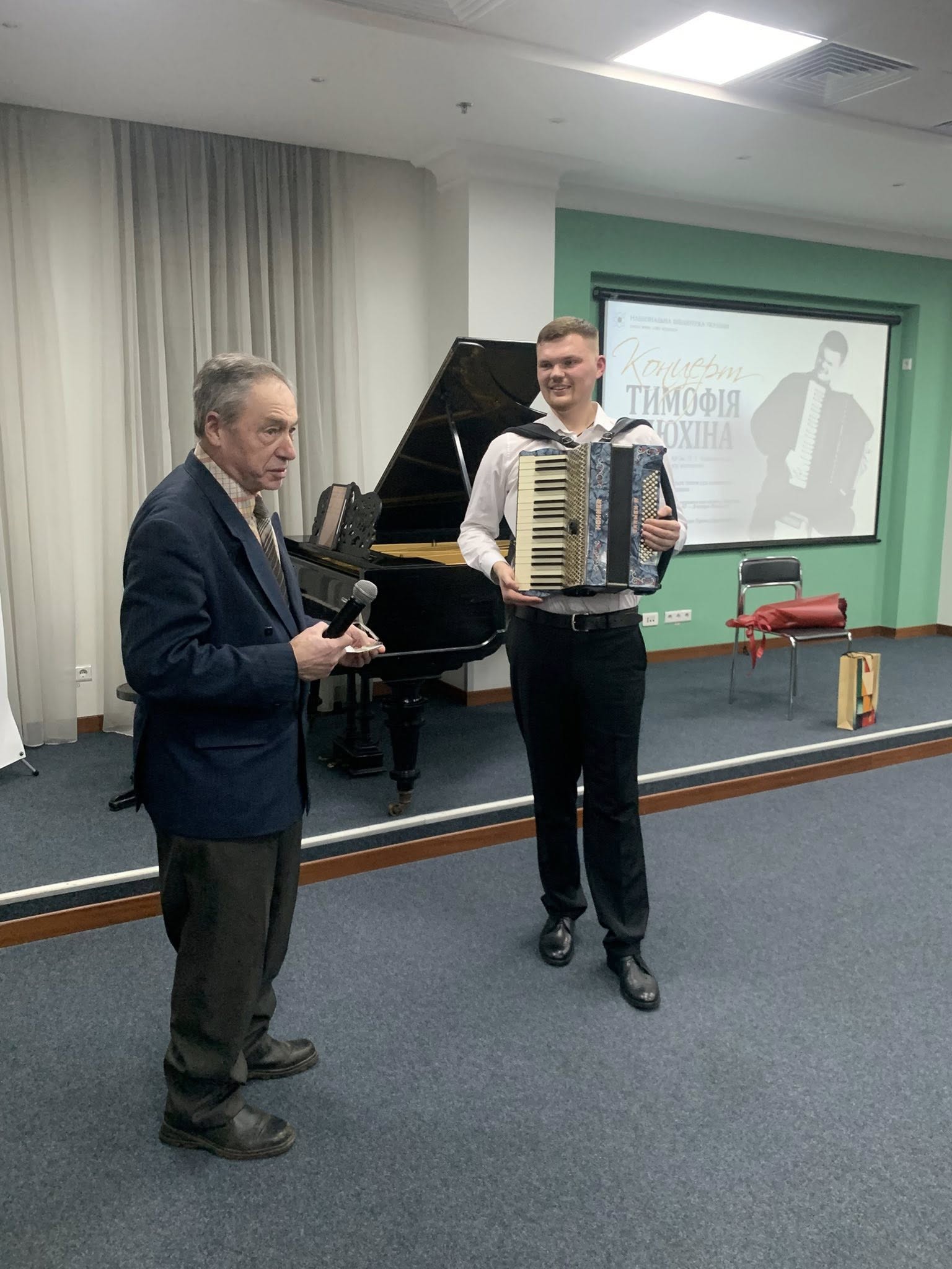«Його гра — то справжній мед для вух» — саме так відгукувались про концерт надзвичайно талановитого акордеоніста Тимофія Ілюхіна - магістранта НМАУ ім. П. І. Чайковського 2 курсу навчання, класу старшого викладача, доктора філософії Дмитра Мотузка.